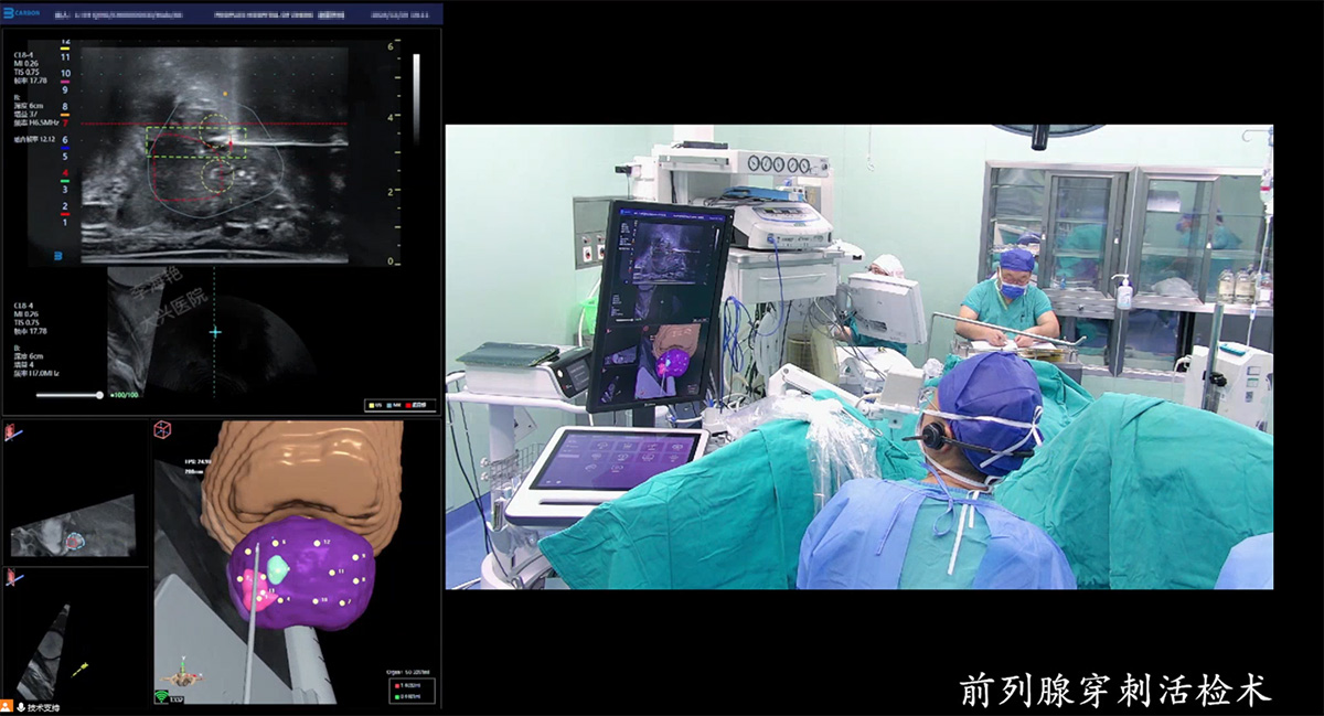 这一手术过程直观地展示了VENUS将MRI与超声进行重叠式精准融合,快速完成人体解剖结构3D重建,并以2D-3D联动影像呈现手术过程,智能辅助术者精准锁定可疑病灶区域并进行系统+靶向布针,通过智能规划进针路径和穿刺引导,辅助术者快速完成靶向穿刺,以精准获取病理组织。