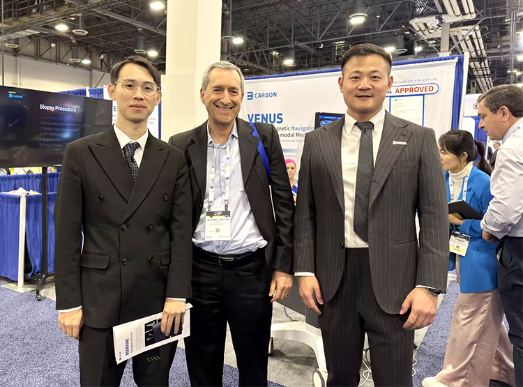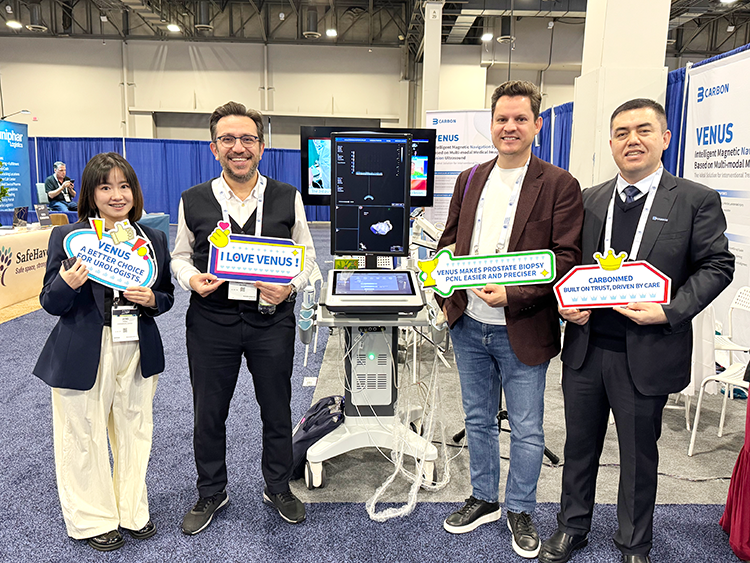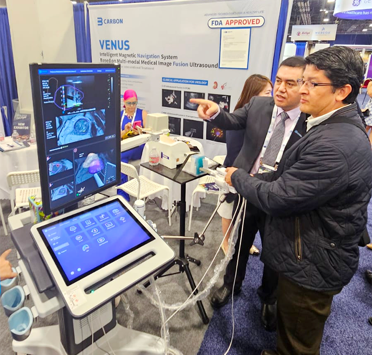 在这场全球瞩目的医学盛会中,中国医疗科技企业以突破性成果引发关注,重塑全球精准诊疗产业格局。卡本医疗凭借着诊疗一体化智能解决方案,成为会议焦点之一。产品VENUS所展现出的人工智能、影像融合、精准引导等革新性技术,受到了各国泌尿外科专家和代理商的高度关注,重新定义了国际医学界对中国智造实力的认知。