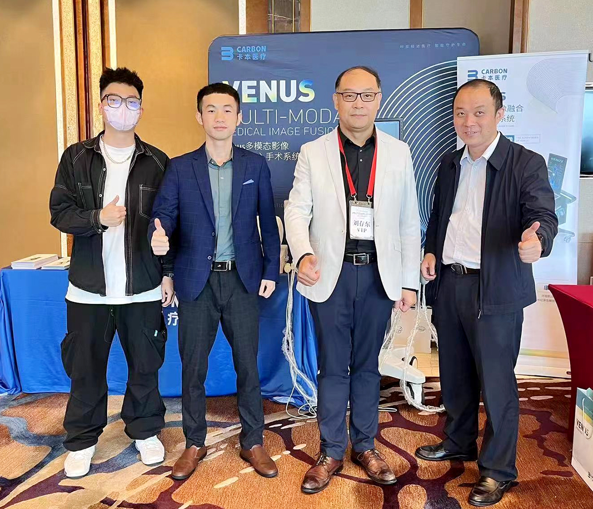 在技术分享结束之后,中山大学肿瘤医院周芳坚教授,中山大学肿瘤医院刘卓炜教授,南方医科大学第三附属医院刘存东教授、中山大学附属第三医院温星桥教授、广州医科大学附属第五医院徐桂彬教授、广州市花都区人民医院万颂教授、云浮市市人民医院邓月云教授、阳江市人民医院何京伟教授、惠州市第三人民医院杨伟忠教授、吴川市人民医院郭伟钊教授、佛山市人民医院徐文峰教授、广东医学院附属医院叶木石教授、廉江市人民医院康永盛教授、湛江市第一中医院王光教授、广东省农垦医院凌峰教授、湛江徐闻医院徐凯教授、广东医科大学附属东莞医院闫道先教授、东莞市人民医院曹正国教授、云浮市人民医院李永青教授、深圳市宝安区中心医院张宇教授、龙门县人民医院李波教授、河源市源城区人民医院郭名南教授等纷纷亲自体验了卡本VENUS并表示,可视化规划穿刺路径,快速精准引导建立介入通道,精准靶向穿刺,卡本VENUS不仅提高了手术安全性和效率,为患者提供了更为精准的治疗方案,更降低了临床医生的学习曲线,有利于培养更多的年轻基层医生。